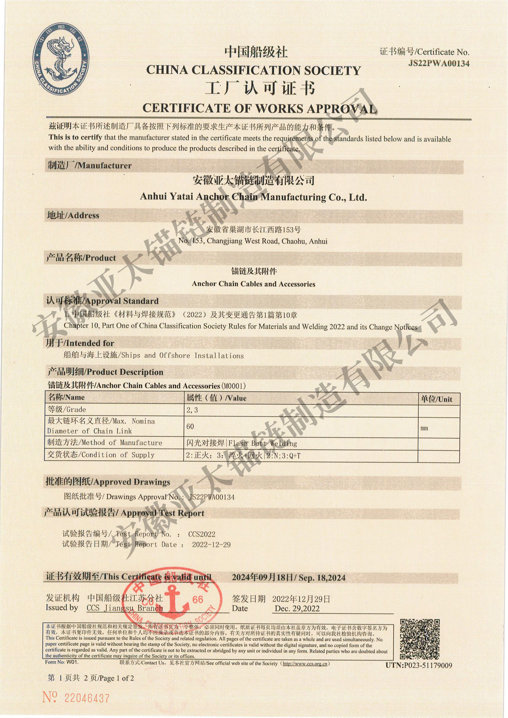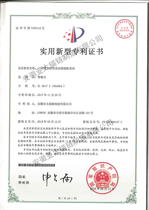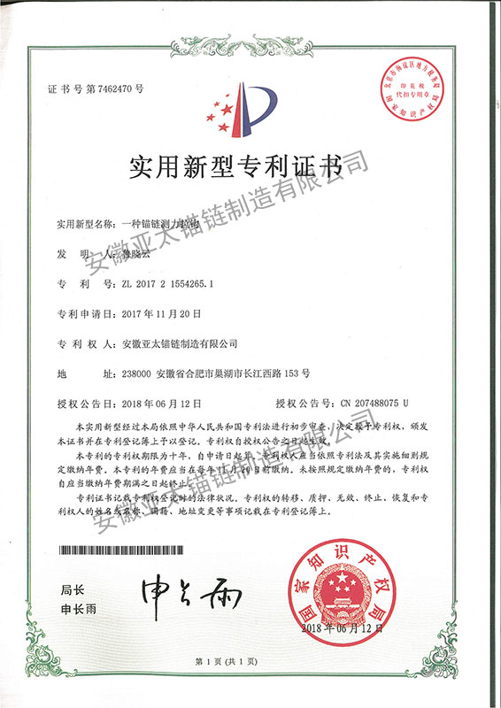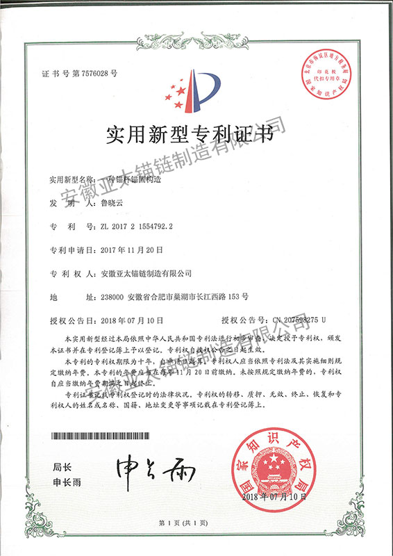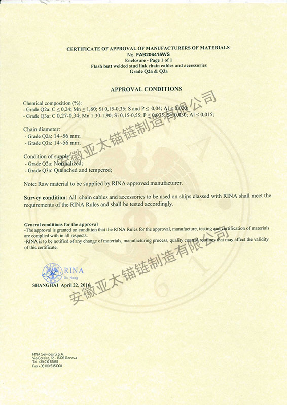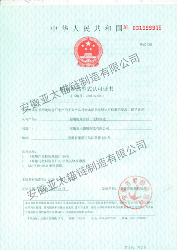 安徽亞太錨鏈制造有限公司是國家高新技術企業(yè),也是國家GB/T 549-2017《電焊錨鏈》標準的起草和制定單位之一。公司旗下設有錨鏈分廠、浮標分廠、舾裝件分廠等多個分廠。公司專業(yè)從事φ12.5mm-φ107mm二、三級船用錨鏈、浮標錨鏈、錨鏈附件,錨、船舶曬裝產(chǎn)品、航標、系船浮、船型標、多種規(guī)格海洋監(jiān)測浮標及航標燈等產(chǎn)品的生產(chǎn)、安裝和服務。目前公司的產(chǎn)品銷往全國各地船廠、碼頭、航標處、航道局、海洋局,并已走上國際市場,如東南亞、中東、歐美等國家。