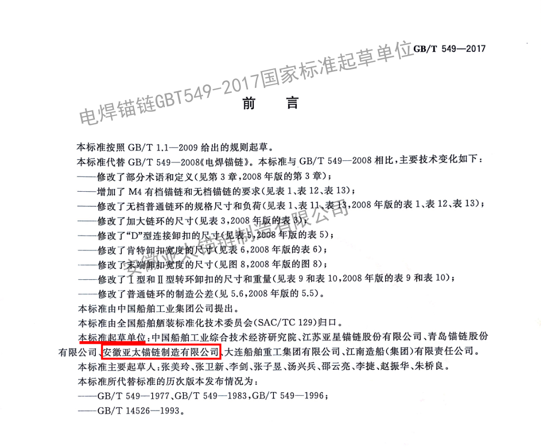 電焊錨鏈GBT549-2017國家標準起草單位